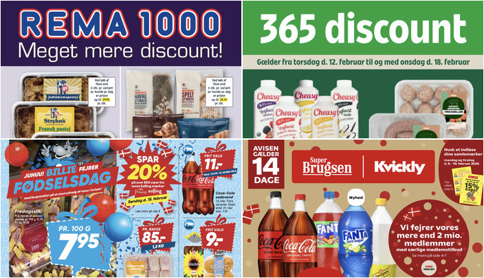 SuperBrugsen tilbyder Coca-Cola, Fanta eller Schweppes til en pris af kun 11 kr. pr. flaske (125-150 cl). Dette tilbud gælder fra fredag den 6. februar til torsdag den 19. februar 2026.